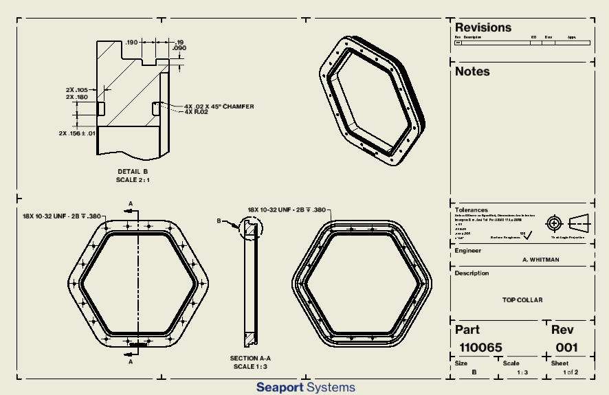 After tending to the most catastrophic 3D print failure I've ever seen, I hopped into the machine shop to get the new Top Collar machined. I detailed the changes in last week's update, but basically the o-ring grooves match now, and I added more bolts to the bolt pattern. Machining was shockingly uneventful. Setup, Op1 and OP2 took less than an hour and a half. The real takeaway, besides a clean part ready for Thursday's deployment, is being far more comfortable with CNC programming and operating the VF-5.